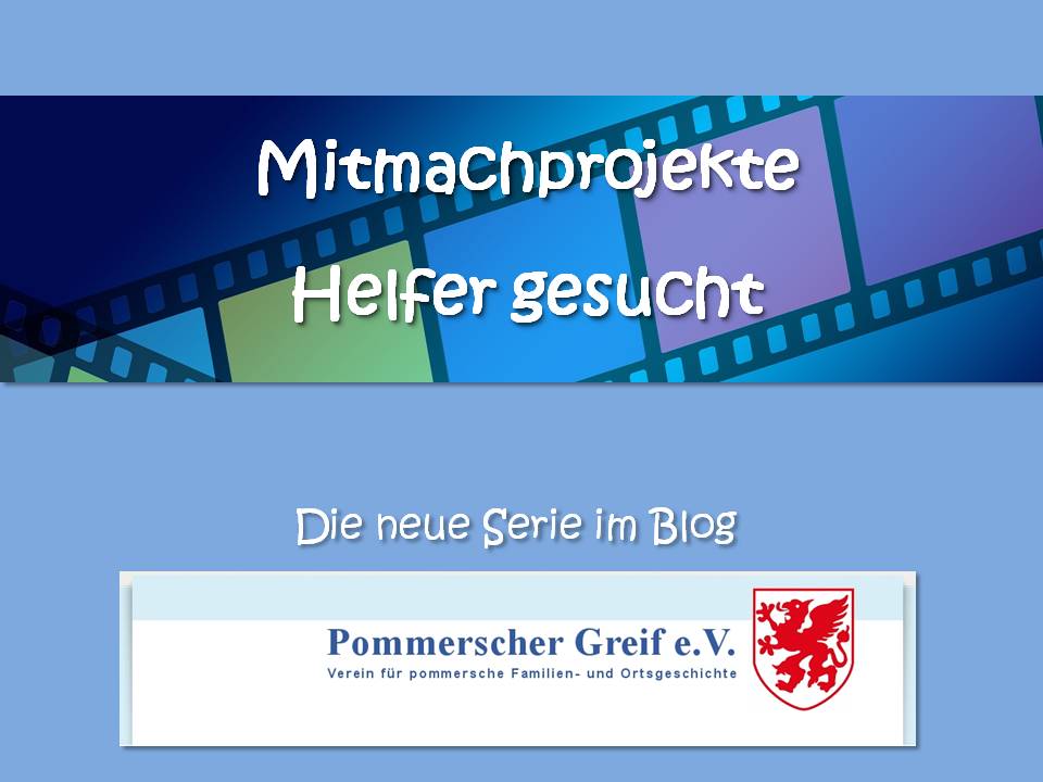IHRE Geschichte rund um Ihre Pommernforschung würden wir gerne hier im Blog veröffentlichen. Nur Mut! Setzen Sie sich mit uns in Verbindung unter Mitmachprojekte Pommerscher Greif
