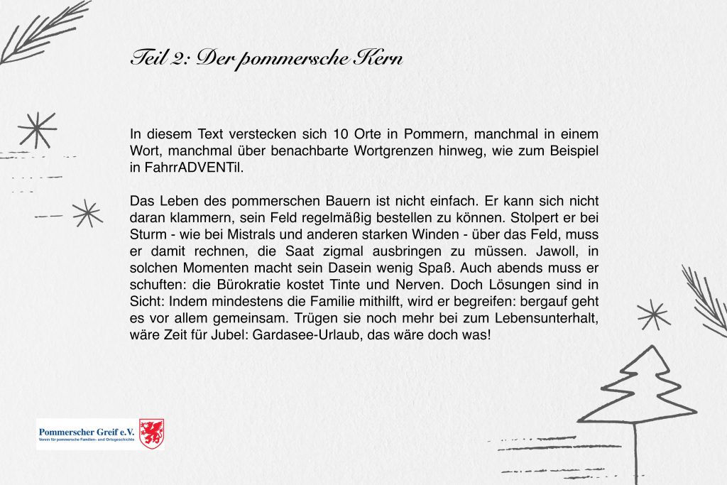 Wir wünschen viel Freude beim weihnachtlichen Rätseln rund um Pommern und viel Glück bei der Verlosung!