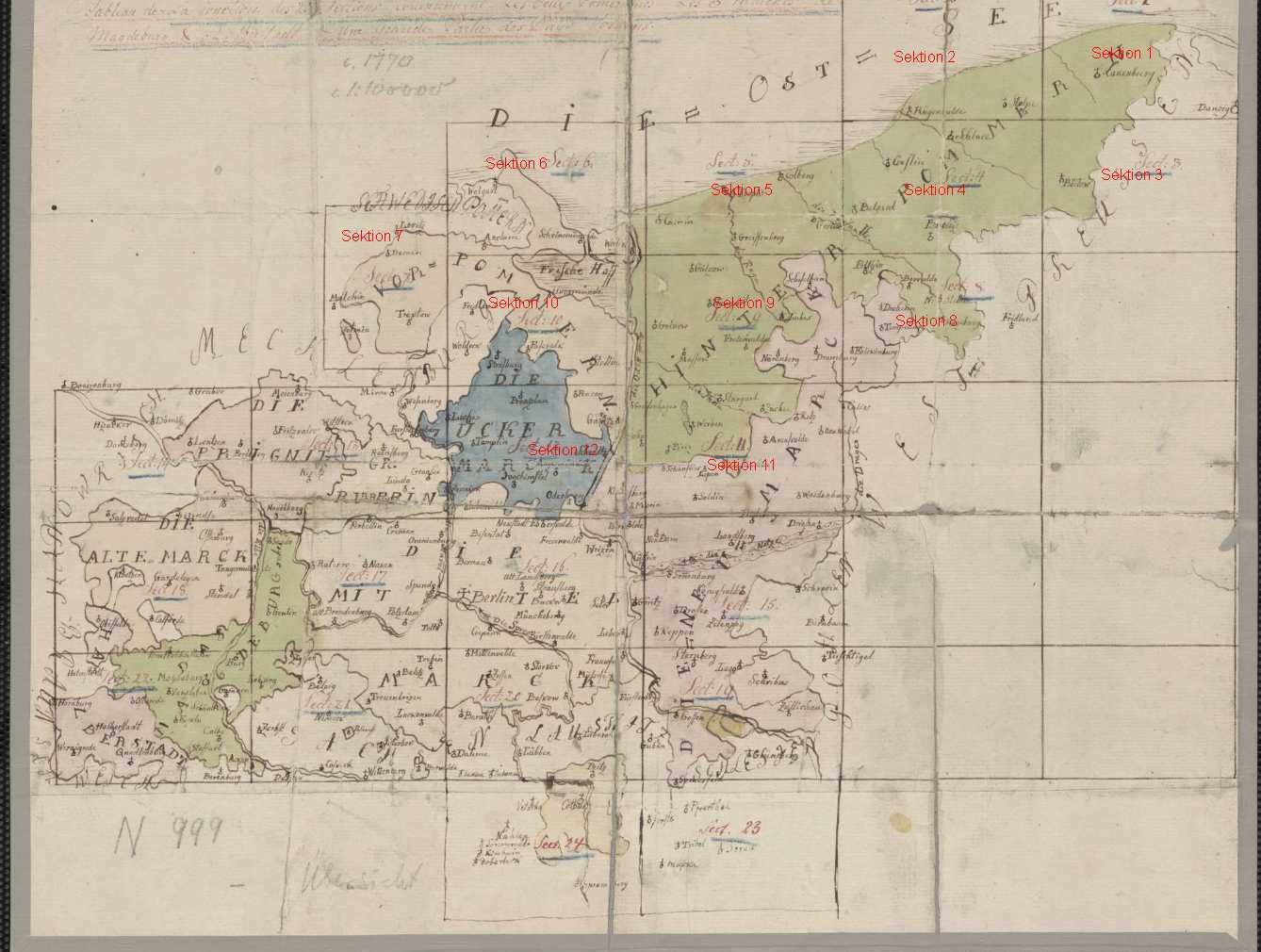 Eine Übersichtskarte zeigt die einzelnen „Sektionen“. Sie finden Sie in hoher Auflösung auf https://digital.staatsbibliothek-berlin.de/werkansicht?PPN=PPN1935357824&PHYSID=PHYS_0001
