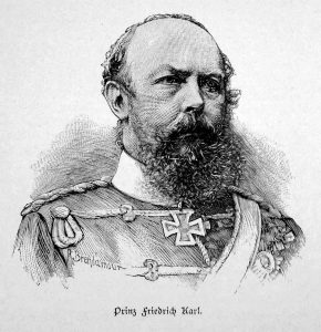 Die Truppen lagen vor Bitsch [Lothringen]. Jeden Tag hatte der vorpommersche Ordonnanzreiter die schwierigsten Ordonnanzen zu reiten. Als er eines Tages oder vielmehr eines Abends gegen 8 Uhr ins Hauptquartier kam und gerade vom Pferde herunter war, wurde er schon wieder zum Generalstabschef gerufen. Dieser übergab dem Reiter ein Schreiben mit der Weisung, das beste Pferd, das zu haben sei, zu nehmen und die Depesche noch vor Mitternacht im Hauptquartier des Kronprinzen abzugeben. Dazu bedurfte es eines ganz außerordentlichen Rittes. Weiter lag aber keine Schwierigkeit vor, da wohl deutsche, aber keine französischen Vorposten zu passieren waren.