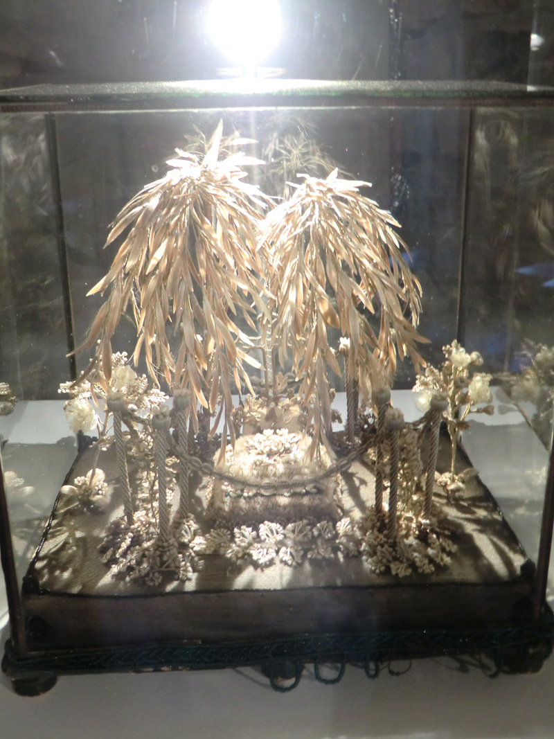 Zimmerdenkmal aus Haaren, Perlen, Stoff und Pappe