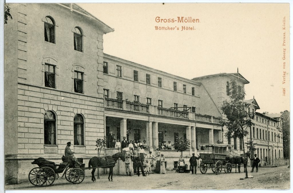 Groß Möllen 1904, Böttchers Hotel mit Pferdeomnibus (?)
