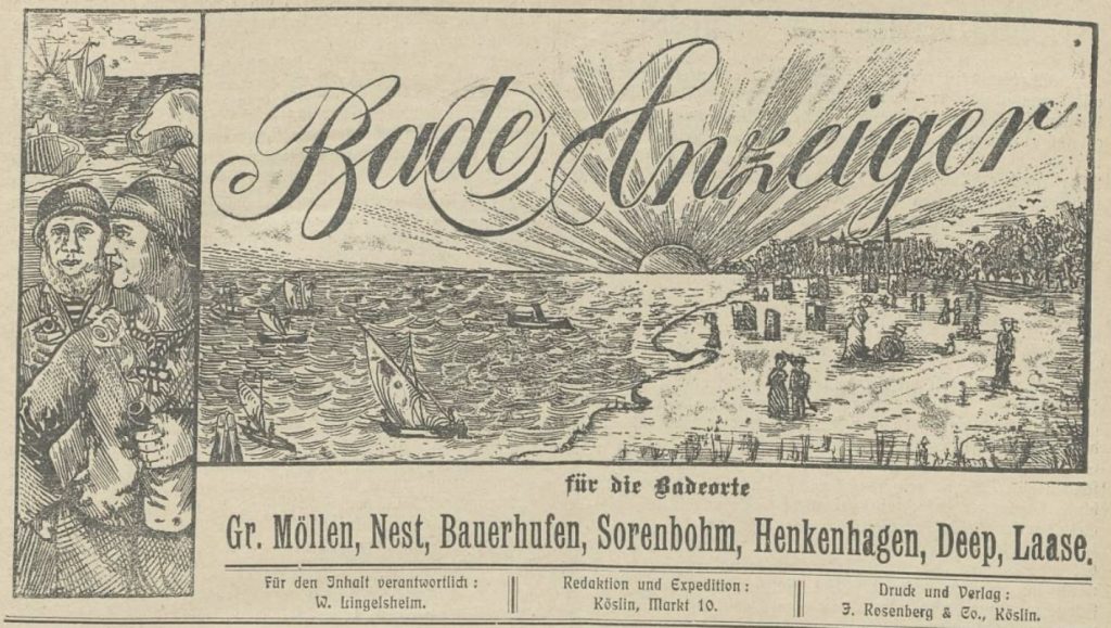 Der Bade-Anzeiger für die Badeorte Groß Möllen, Nest, Bauerhufen, Sorenbohm, Henkenhagen, Deep, Laase 1908, 1909 und 1914 bei der https://digital.staatsbibliothek-berlin.de/ enthält kleine Anektoden und die Kurlisten.