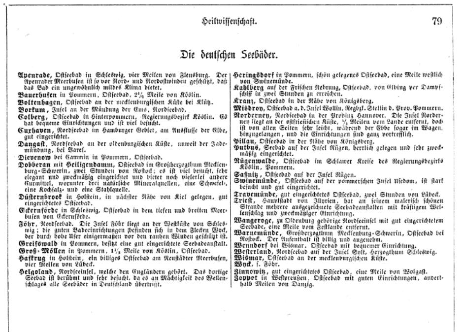 https://www.google.de/books/edition/Illustrierter_Kalender/c_FIagwrUHsC  listet die deutschen Seebäder dieser Zeit auf. Von 35 Orten (warum wohl Triest in der Liste auftaucht?) sind 13 in Pommern.
